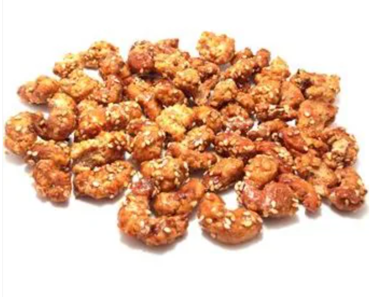 Originada no Brasil a castanha de caju é uma oleaginosa que corresponde a semente da própria fruta. Seu cultivo está concentrado no Ceará mas seu consumo ultrapassa a fronteira do estado e se faz por todo o país. Sua versão caramelizada com gergelim é indispensável para aqueles que valorizam um sabor único e inesquecível. E além de poder compor lanches entre refeições pode fazer parte de ingredientes de inúmeros pratos culinário saborosos.