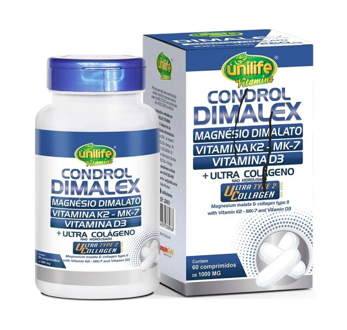 O Condrol Dimalex é uma opção que combina o Magnésio Dimalato, Vitamina K2, MK-7, Vitamina D3 e o Ultra Colágeno Tipo 2 não hidrolisado.