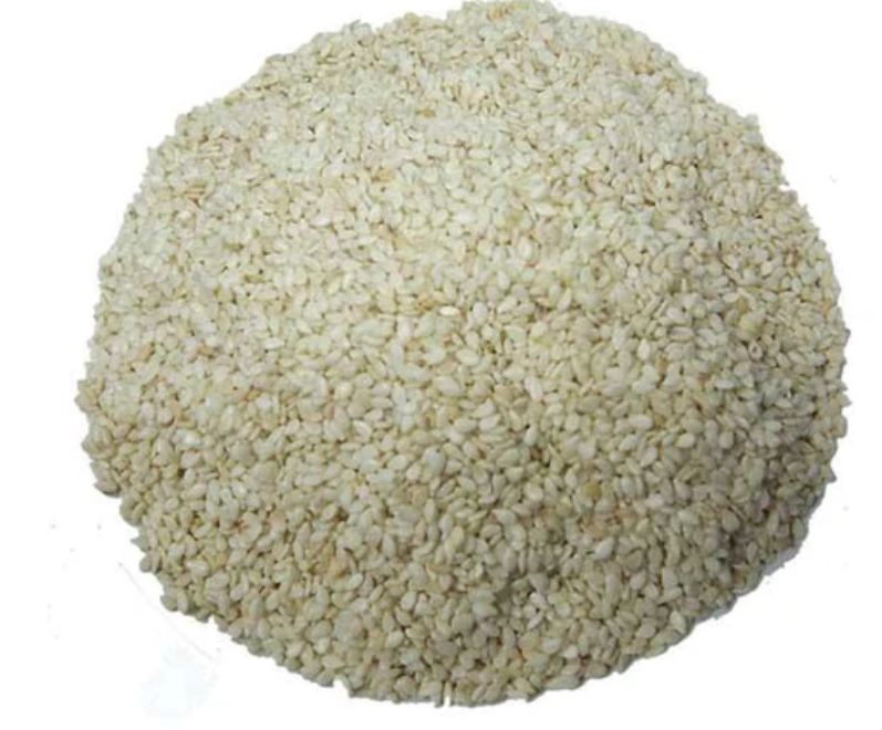O gergelim branco descascado é uma semente pequena e oval, originária da Índia, que possui uma casca externa dura que é removida durante o processo de descascamento. É um alimento rico em nutrientes e saboroso.