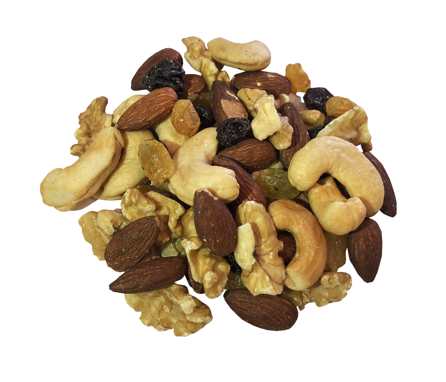 Combinação de castanhas (amêndoas torradas sem sal, castanha de caju torrada sem sal e nozes) e uva passa, este mix é fonte de gorduras mono e poli-insaturadas, e antioxidantes, além de conter grande variedade de vitaminas, minerais e fibras. Ideal para os lanches intermediários.